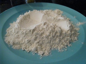 Ok ... once you’re ready - take about 1/4 cup or so of all-purpose flour and season it with garlic powder (or we just add the garlic powder right to the chicken when seasoning it with pepper).