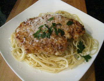 Then we add a couple of minced garlic cloves to the pasta and sometimes toss with parsley - or just top it off at the end when we freshly grate our Parmesan cheese over the top! We also scrape any last bits of the anchovy butter and allow it to melt directly on top of the cooked chicken before grating Parmesan Cheese on top.