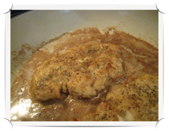 Once the butter is bubbling, add 2 pieces of chicken and cook until lightly browned on the bottom, the recipe suggests about 3 minutes per side - and that is right on with what we have found. The secret to making this work is to be sure your chicken is nice and thin.